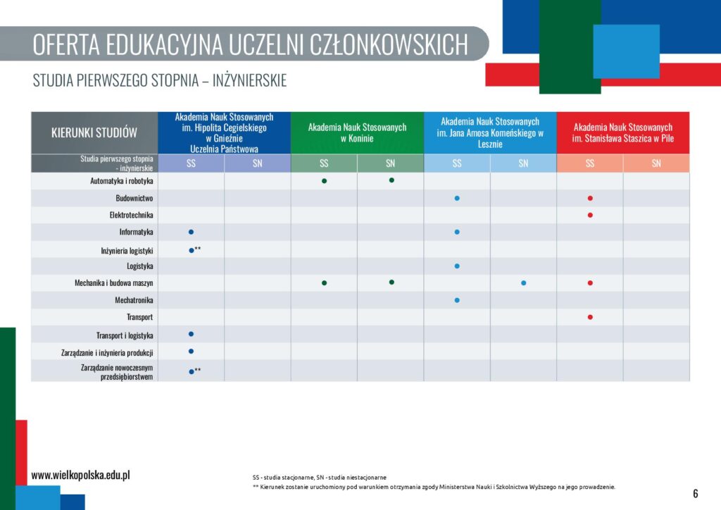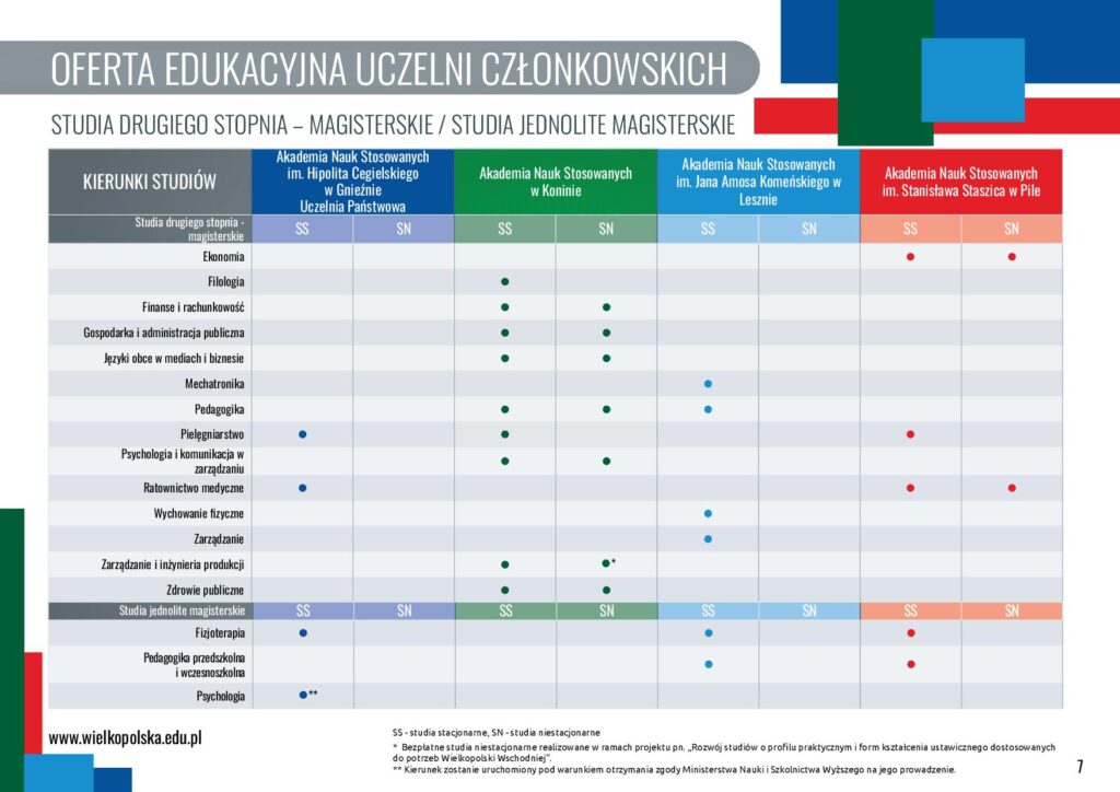 - Akademię Nauk Stosowanych w Koninie,